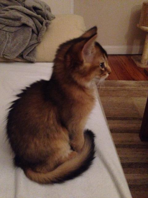 Benito ist ein Bilderbuch - Somalikater und fügt sich gut in die Gruppe ein. Er ist ein Individualist.