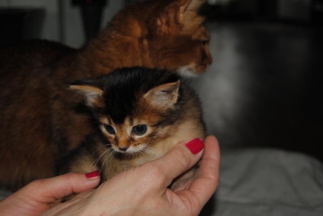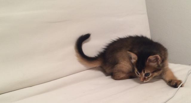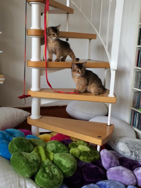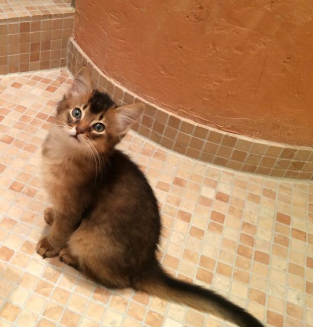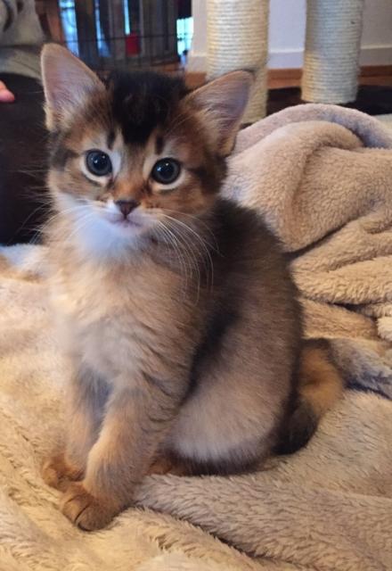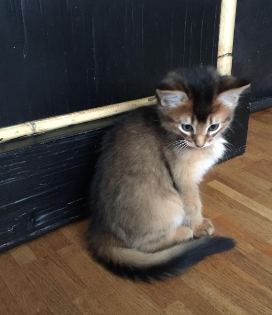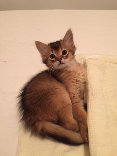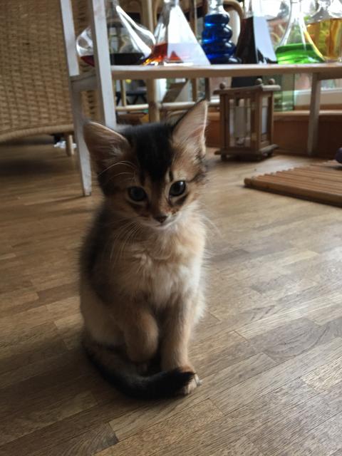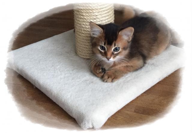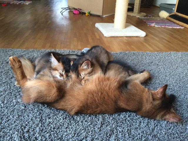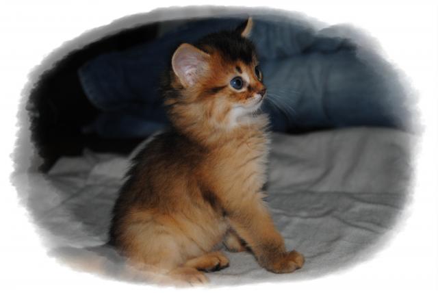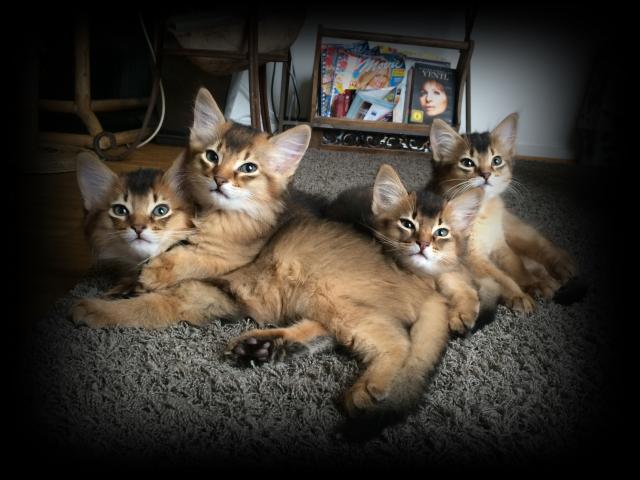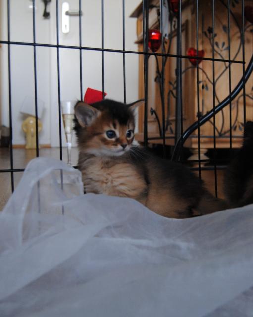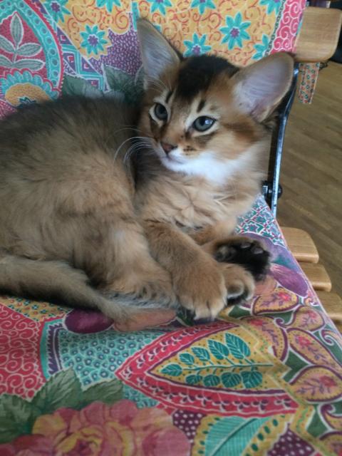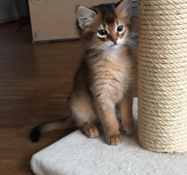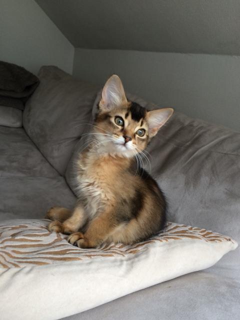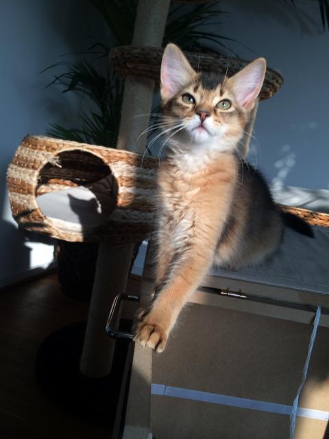 Benito ist ein Bilderbuch - Somalikater und fügt sich gut in die Gruppe ein. Er ist ein Individualist.