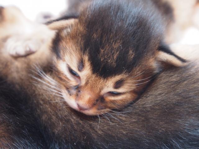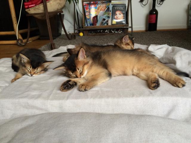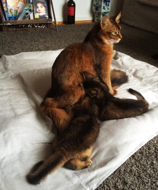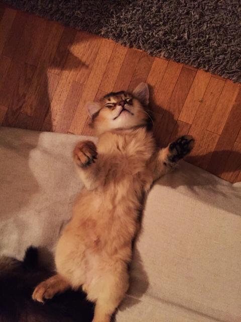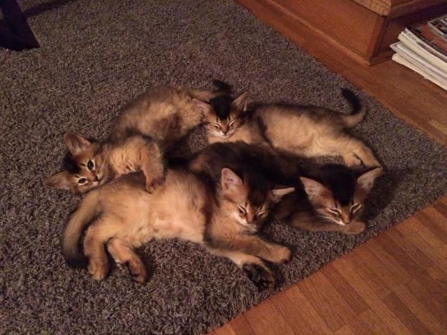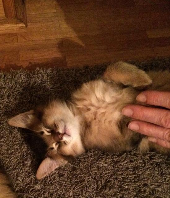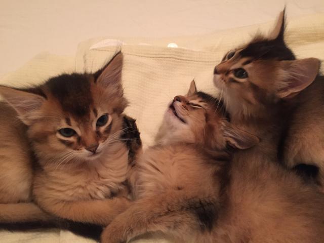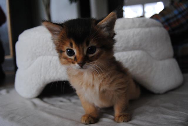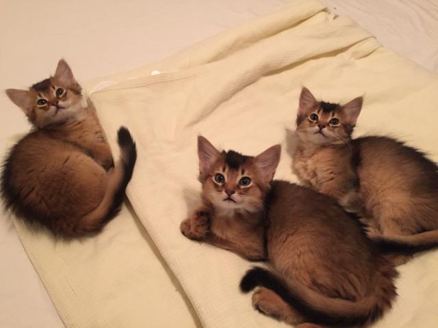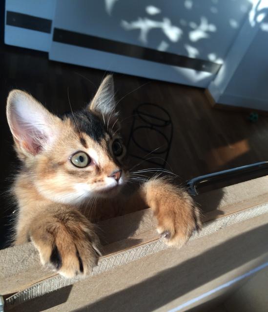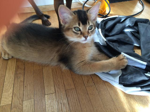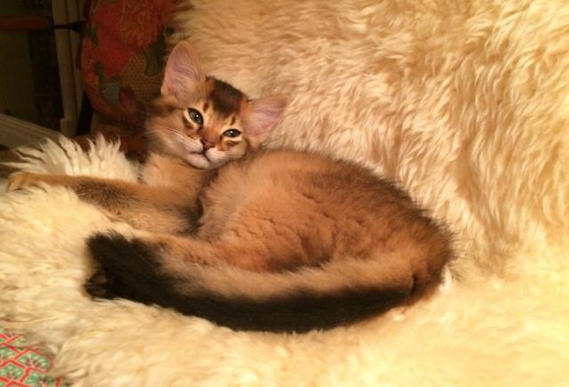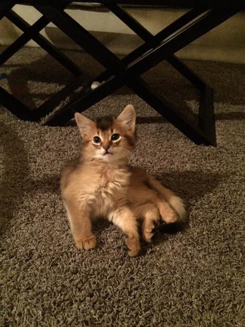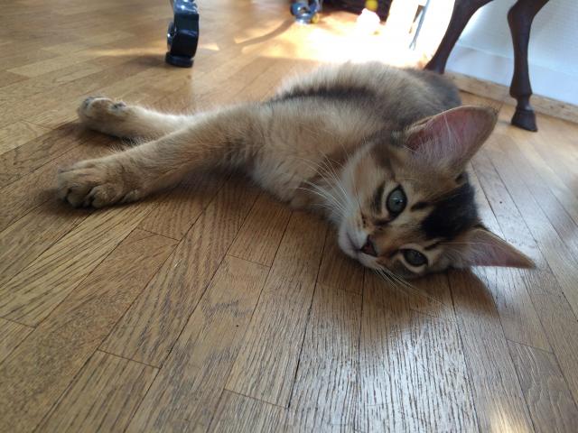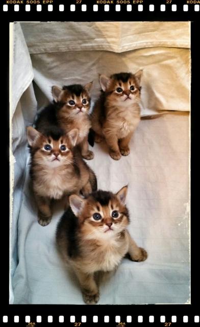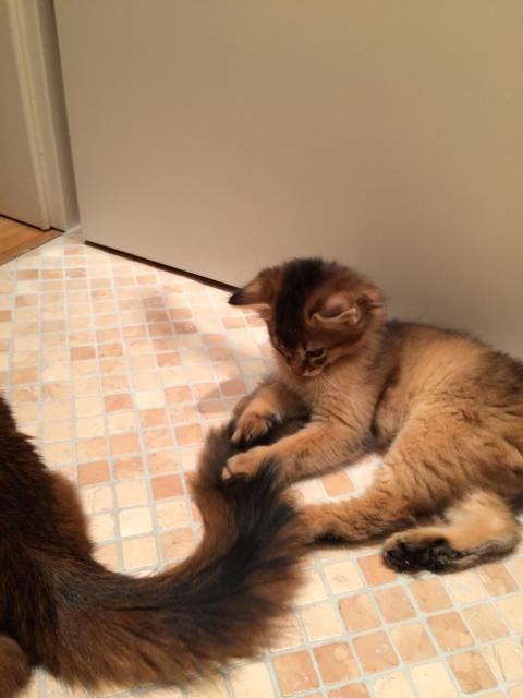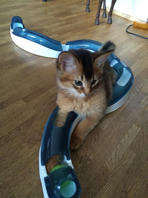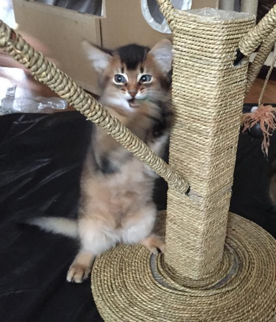 Benito ist ein Bilderbuch - Somalikater und fügt sich gut in die Gruppe ein. Er ist ein Individualist.